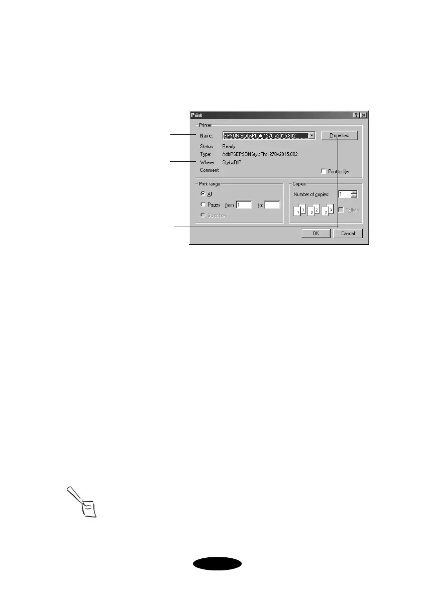 print dialog box. The Where: field changes from