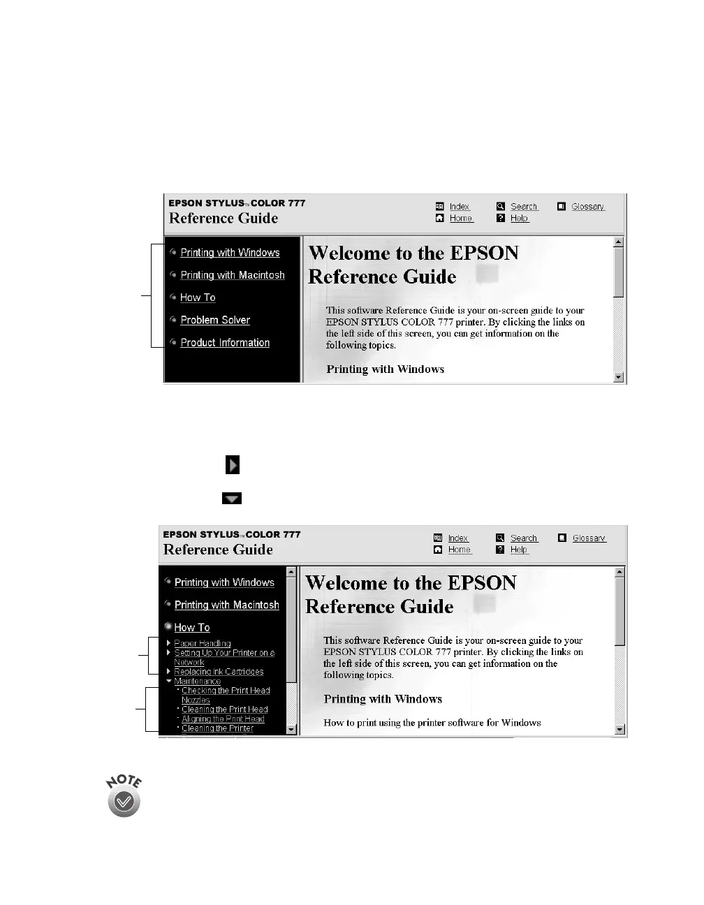 Windows: Select Start, Programs, EPSON, and double-click ESC777 Guide.