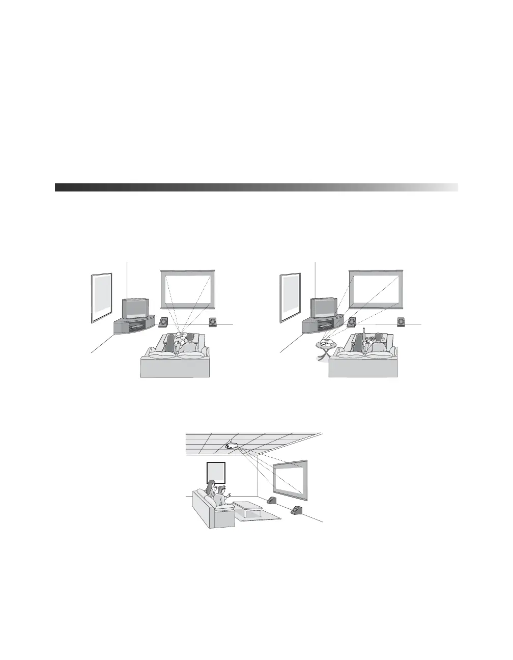 You can install the projector for various viewing setups, as shown below.
