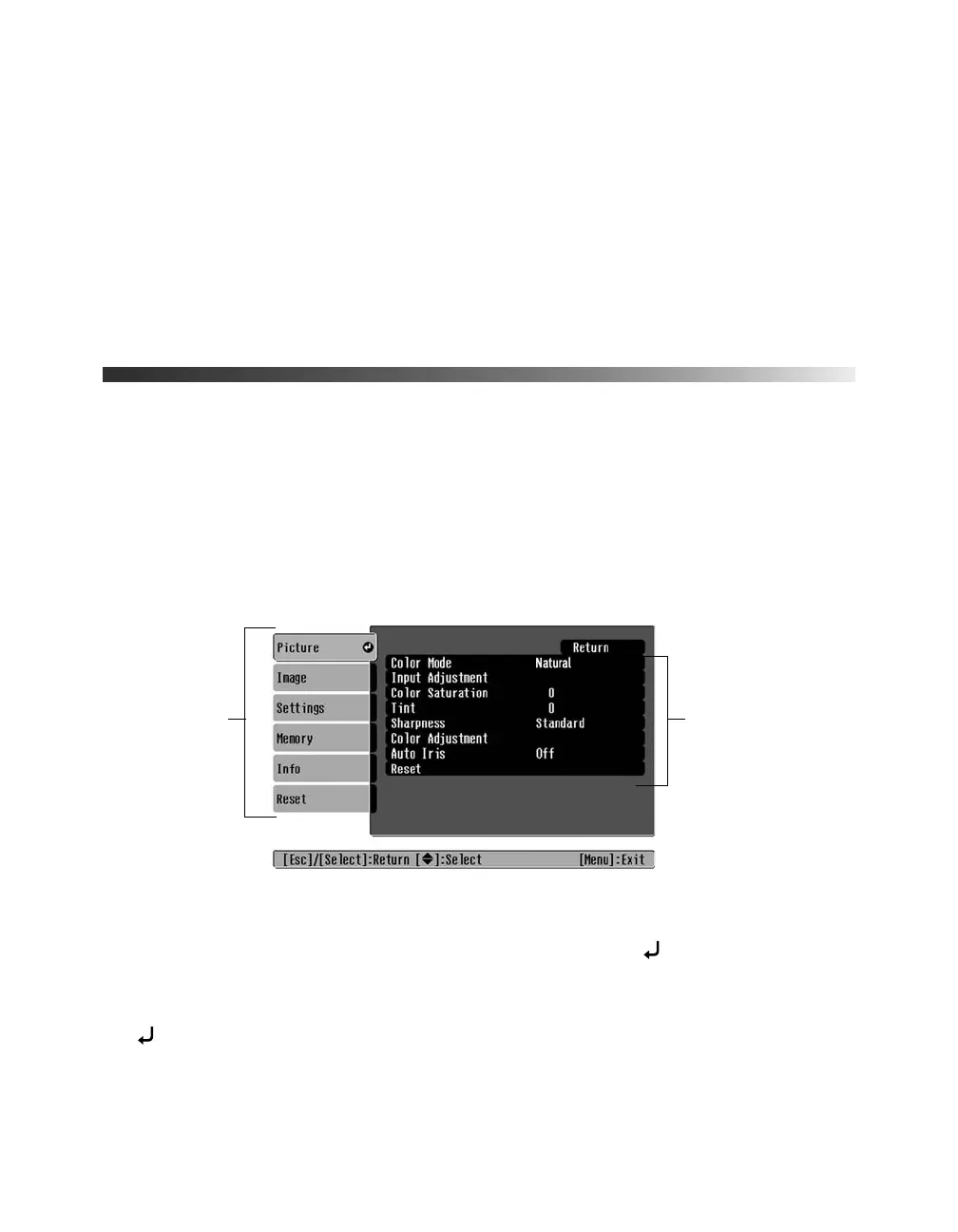 projector’s control panel. You can access the full menu or a line menu that lets you adjust the