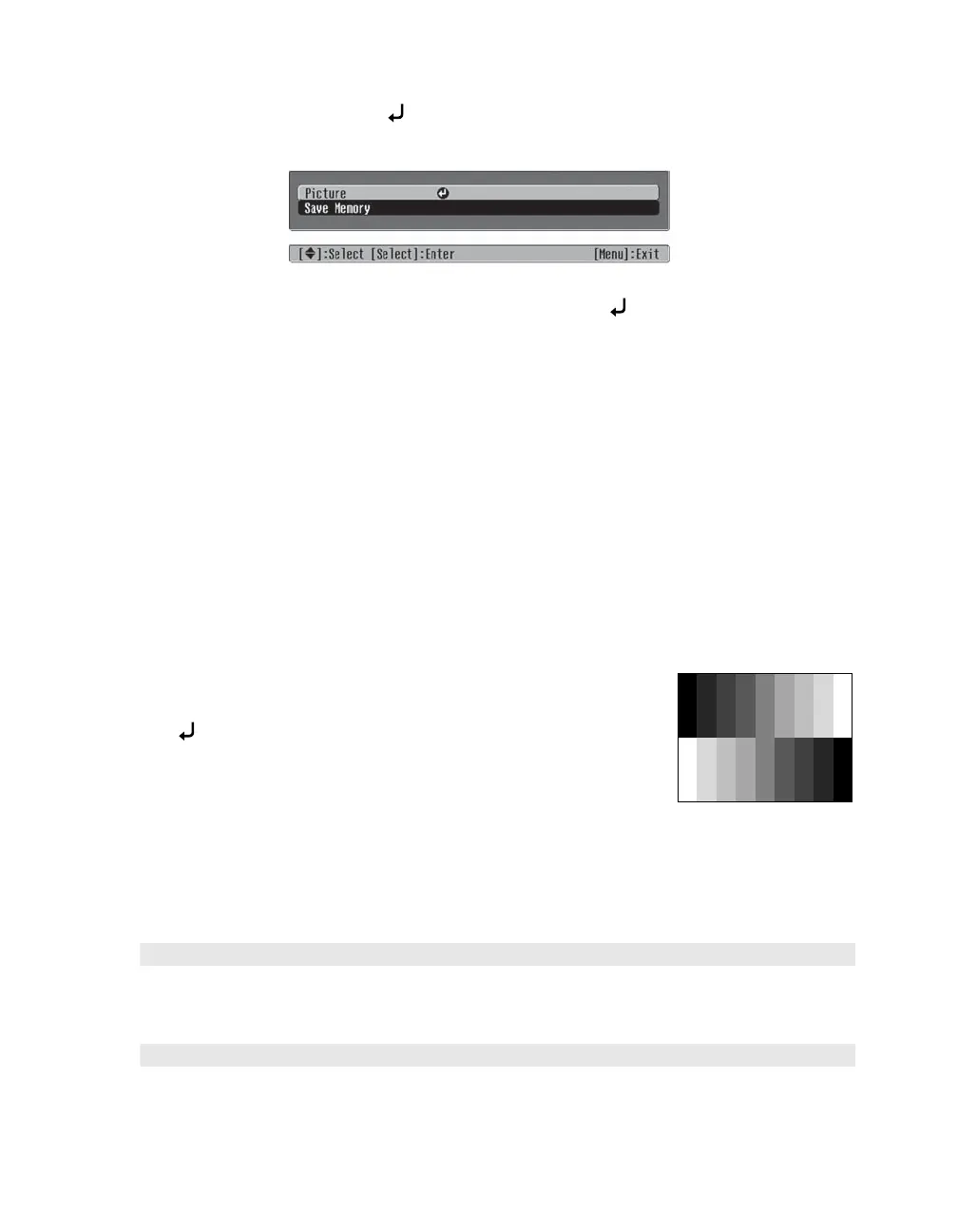 You can display a test pattern to help adjust the settings. Press the