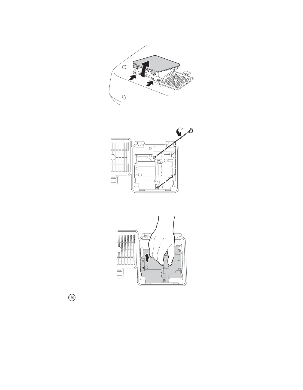 5. Press in the latches securing the lamp cover and lift off the cover.