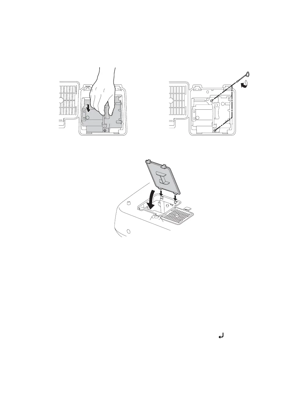 9. Replace the lamp cover. (The projector won’t work if the lamp cover is open or loose.)