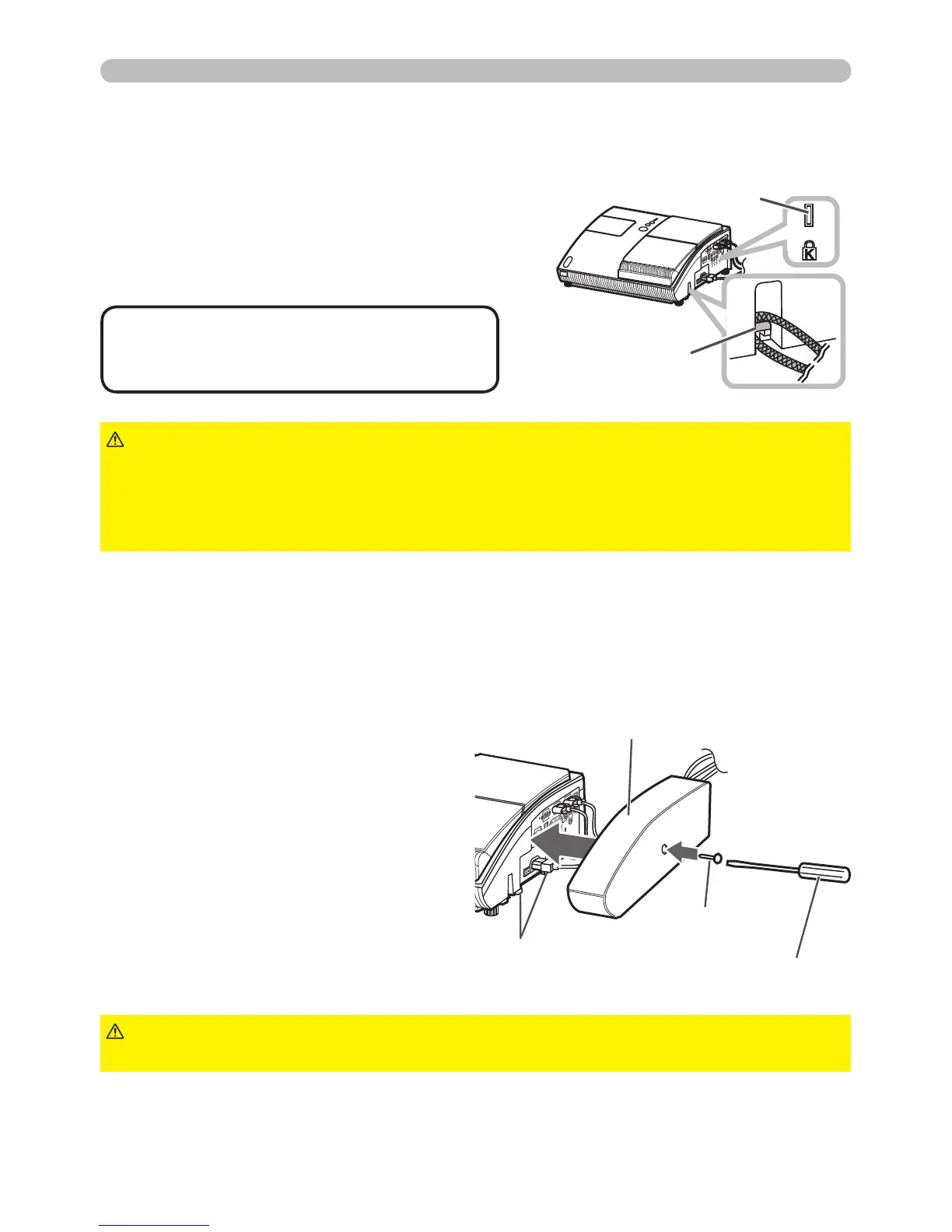 ►Do not place the anti-theft chain or wire near the projector’s