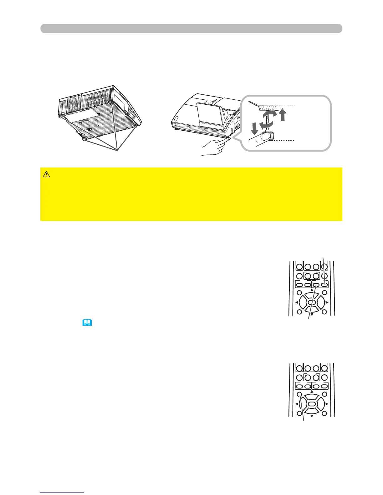 ►Tilt the projector with these elevating feet only.