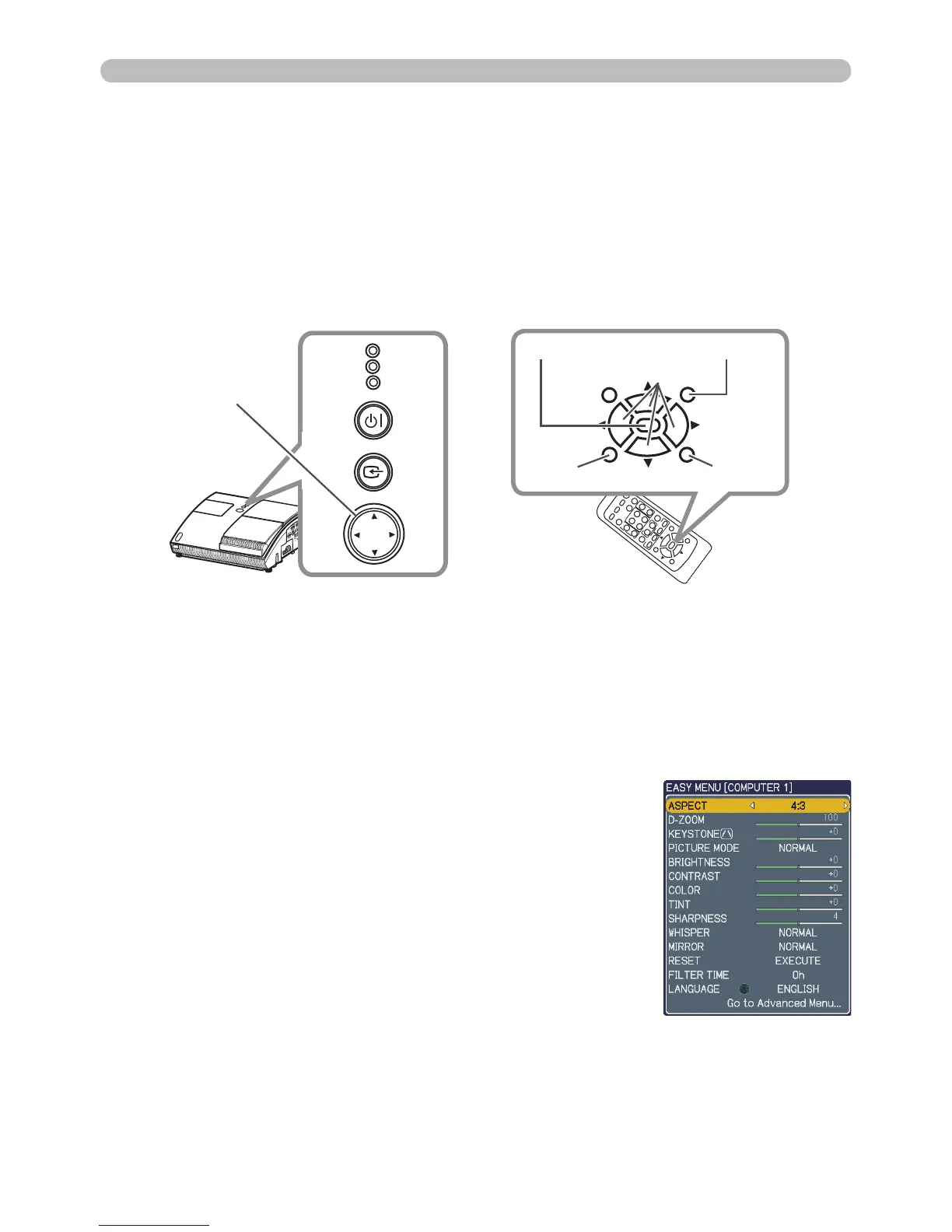 The Advanced Menu or EASY MENU, which has priority just after powered