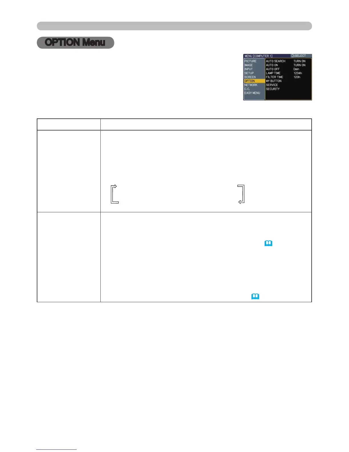 except for the items LAMP TIME and FILTER TIME. Then