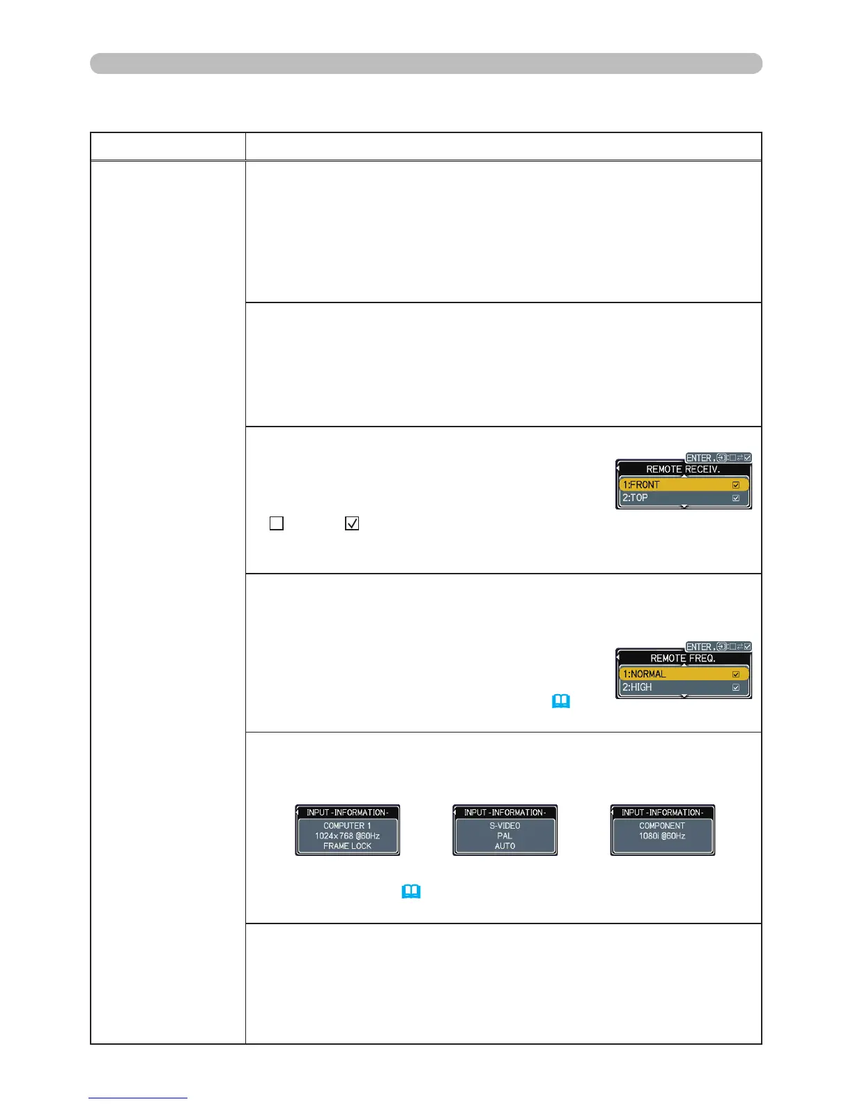the initial setting. Note that the items LAMP TIME, FILTER TIME,