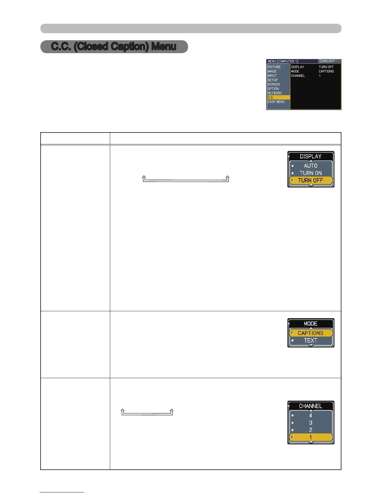 • The C.C. (Closed Caption) is the function that displays a