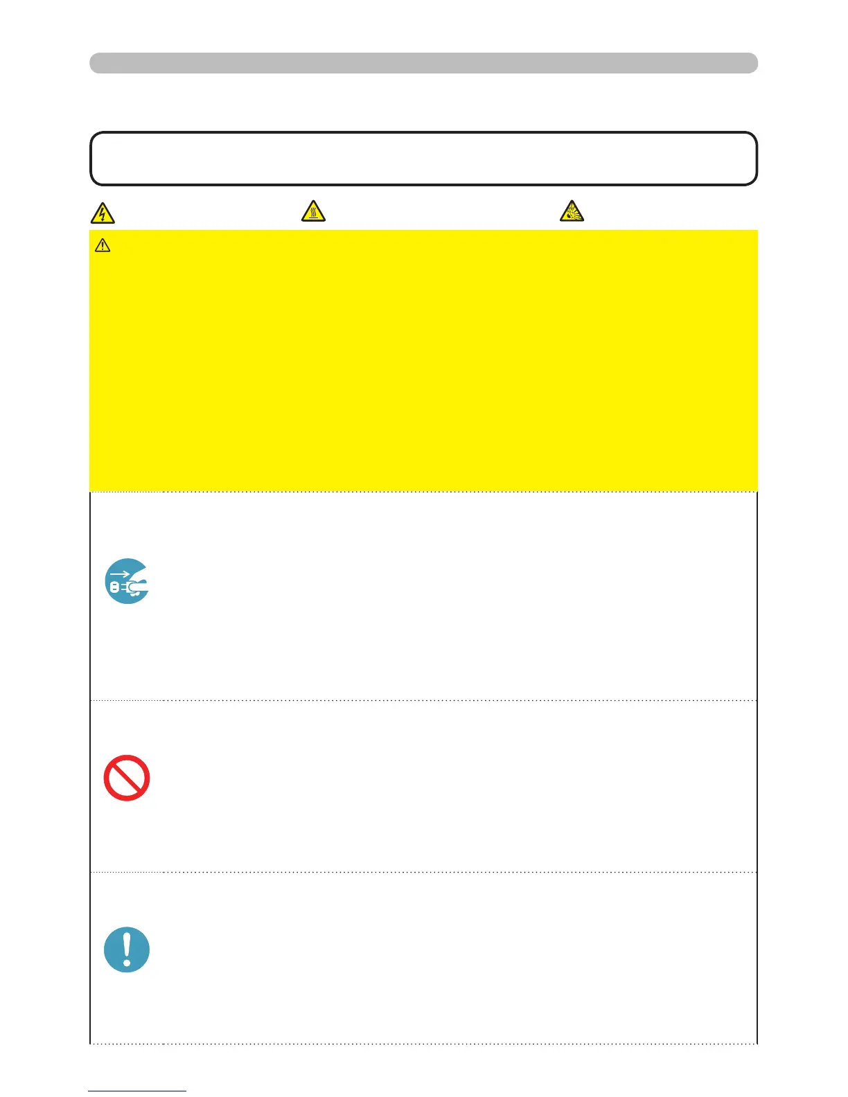 • Do not use the projector with the lamp cover removed. At the lamp replacing,