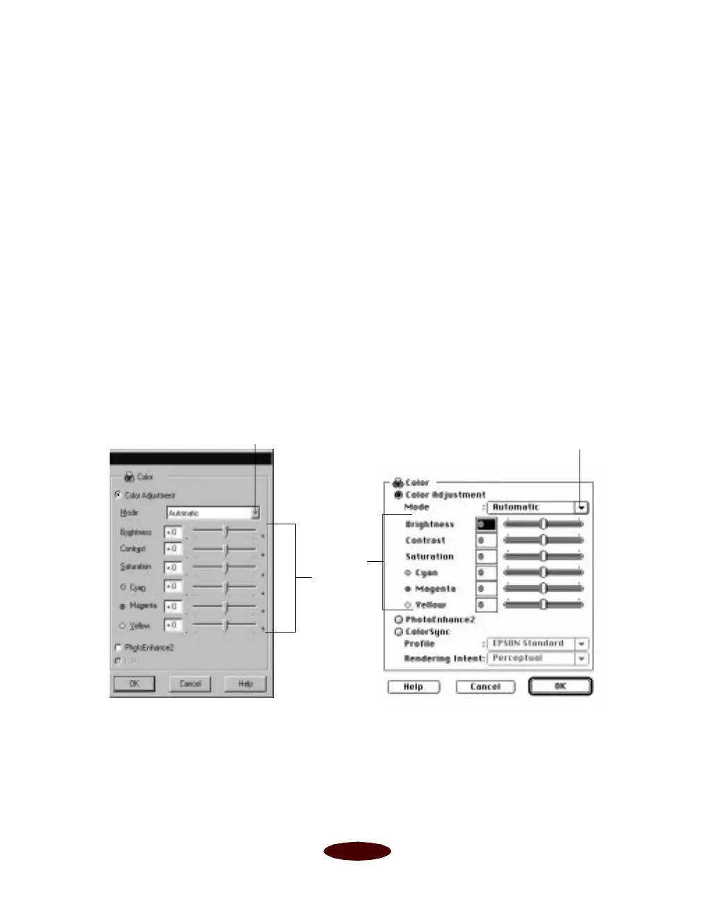 Color Matching (ICM; Windows 95) or ColorSync