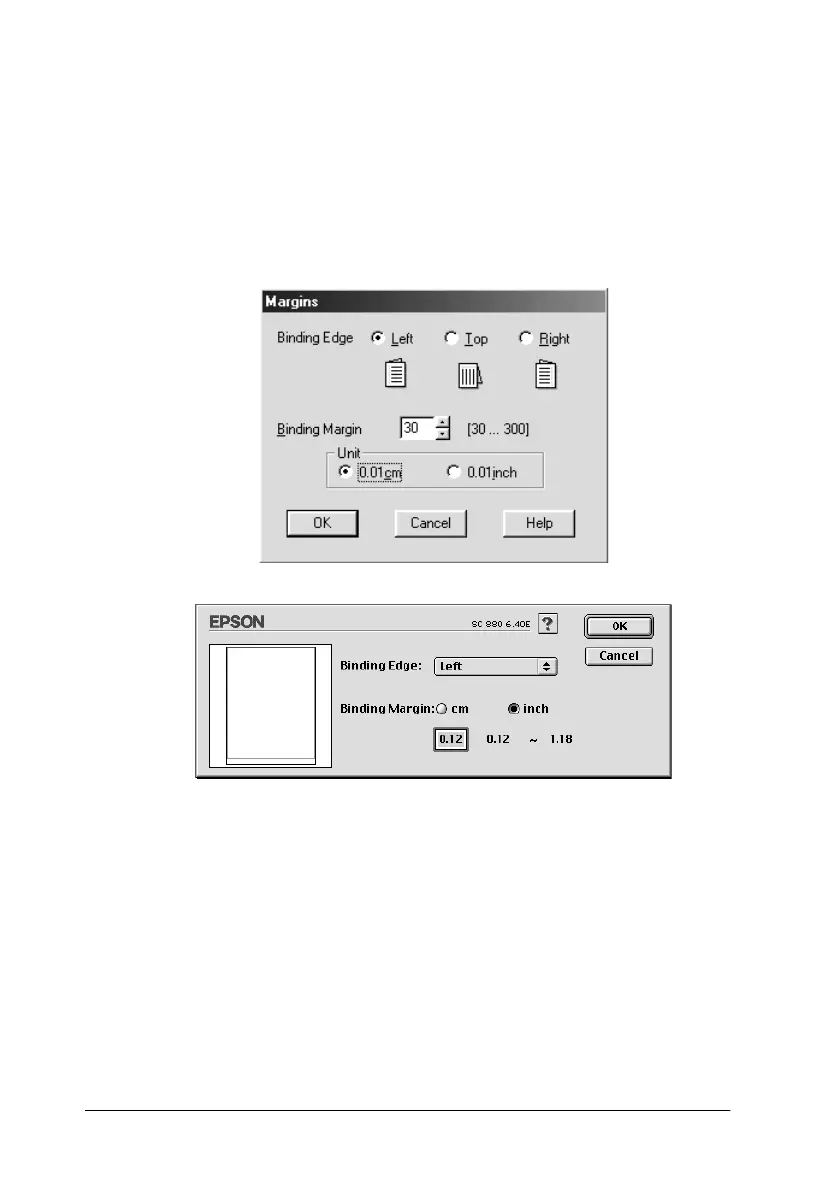 the binding margin by entering a value in the Binding Margin text