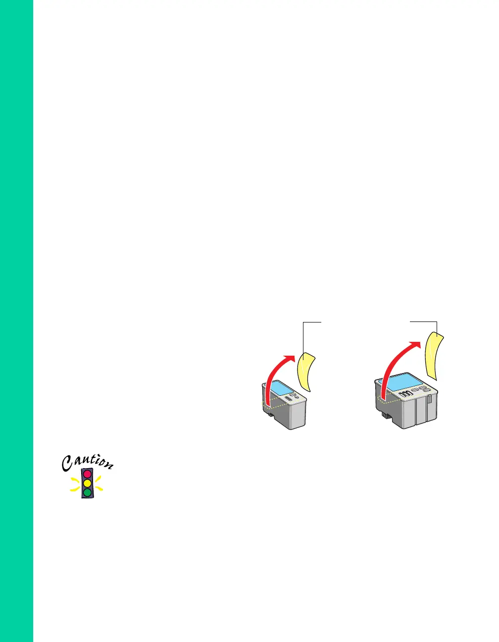 the clear seal from the bottom of the cartridge; ink will leak.