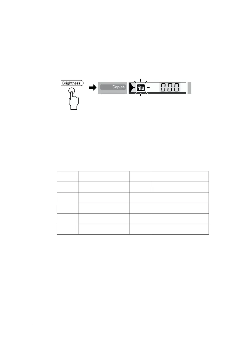 lists the filter numbers and their effects. Also refer to the color