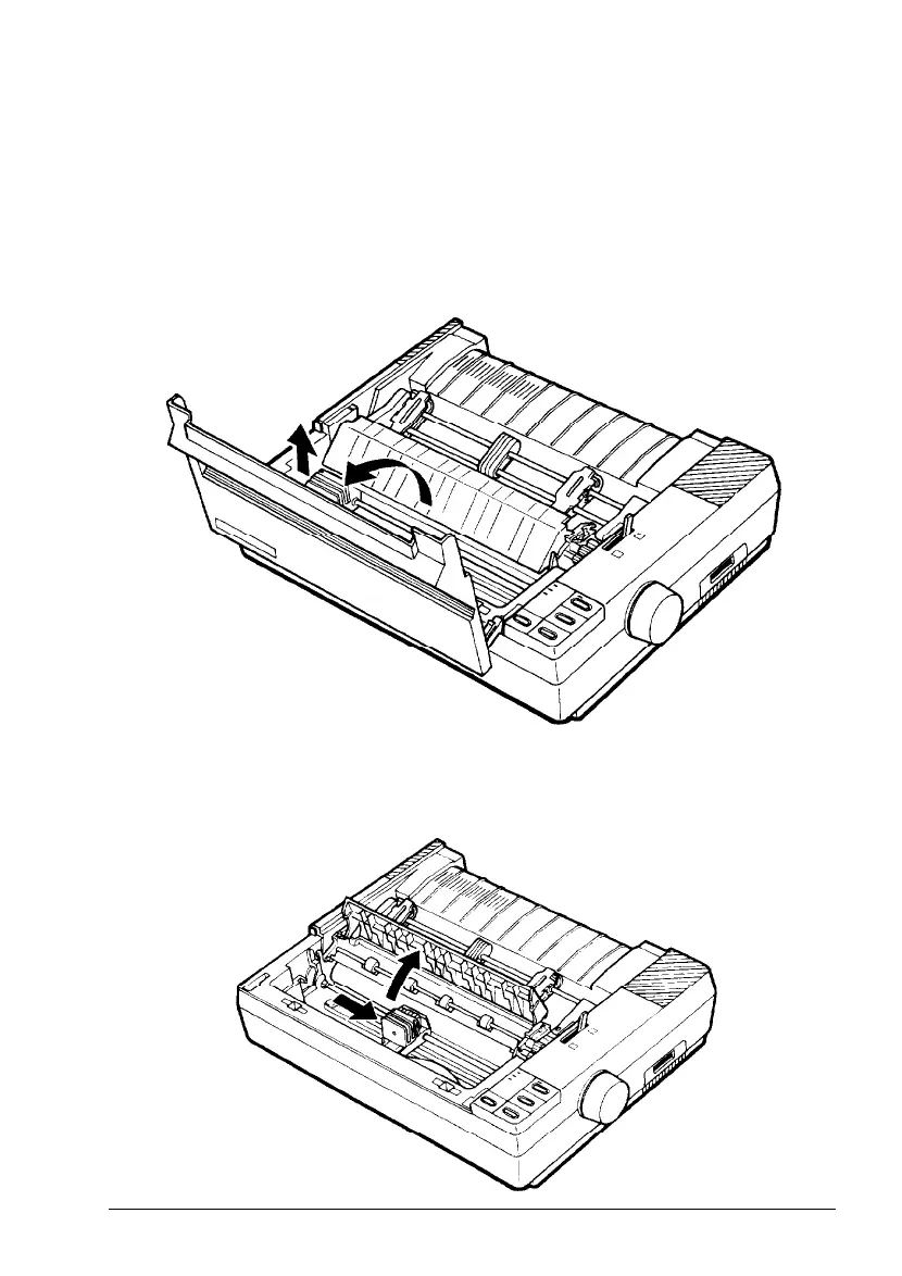 Raise the printer cover to the upright position. Then lift the