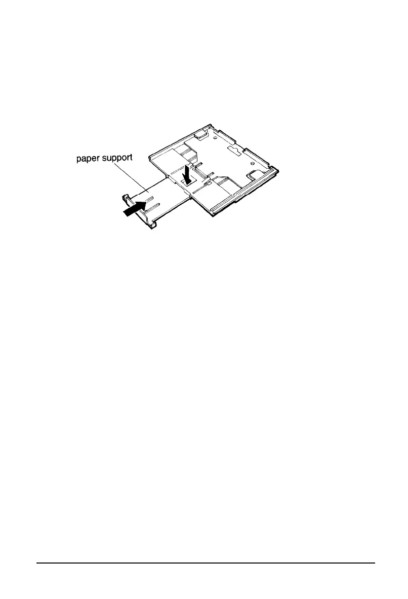 the paper support in while pushing down on the locking tab.