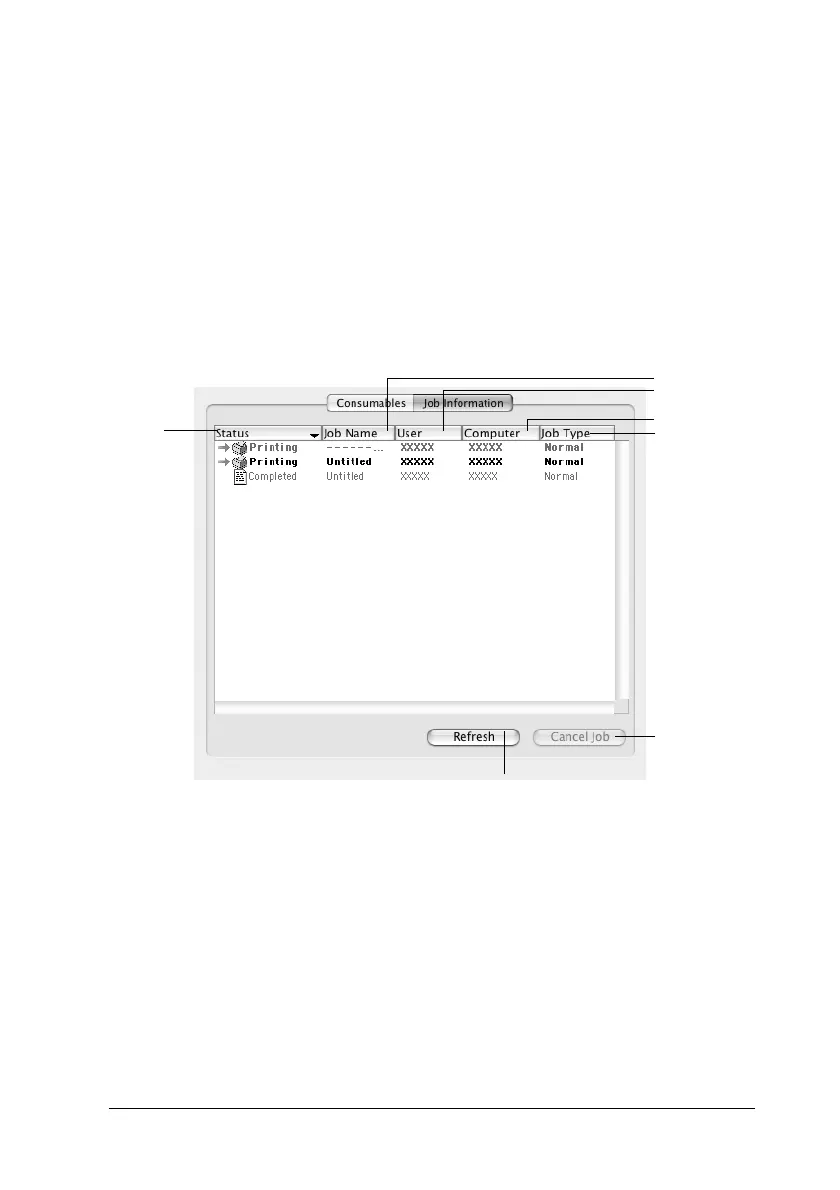 You can obtain information on the print jobs on the Job