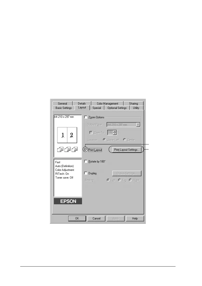2. Select the Print Layout check box, then click Print Layout