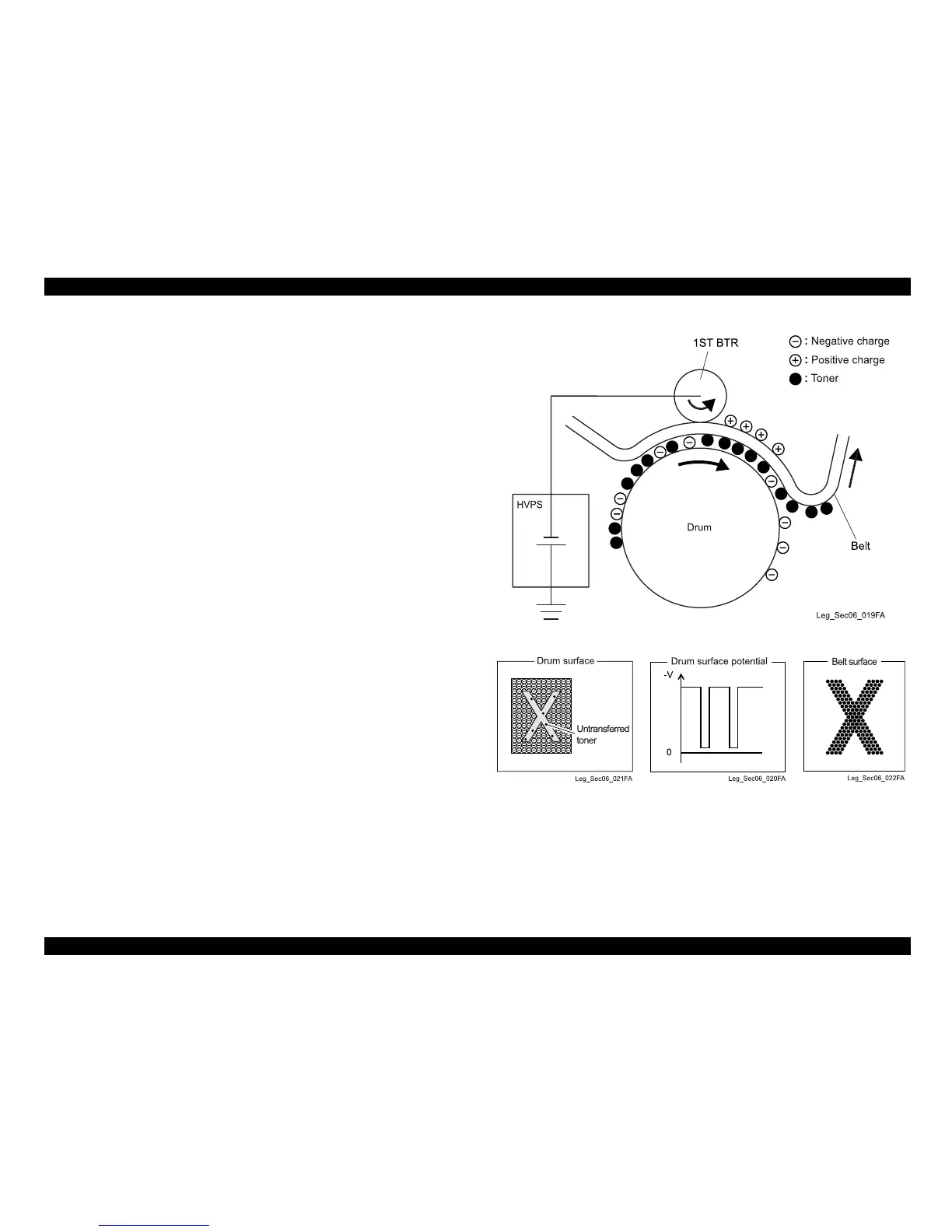 charge on the back side of the Belt, and is transferred to the Belt from the drum.