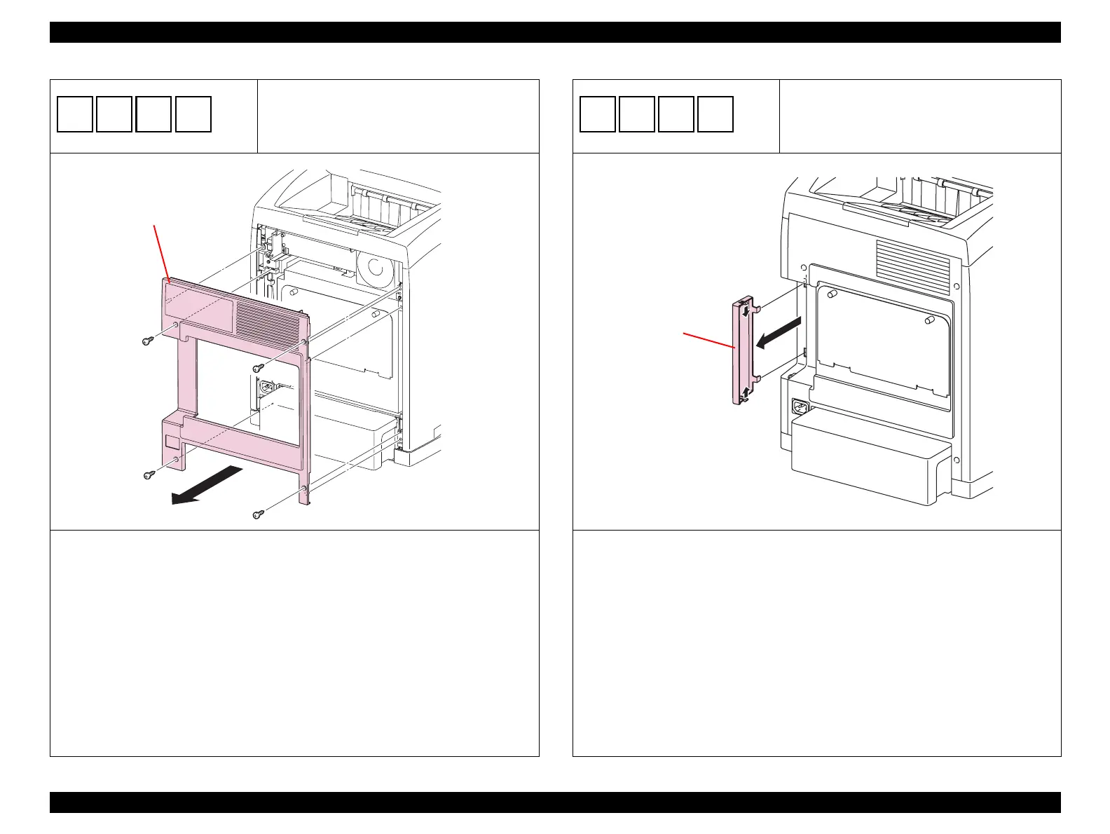 1. Remove the four screws (silver, self-tapping, 10 mm) that secure the COVER REAR to the main unit.