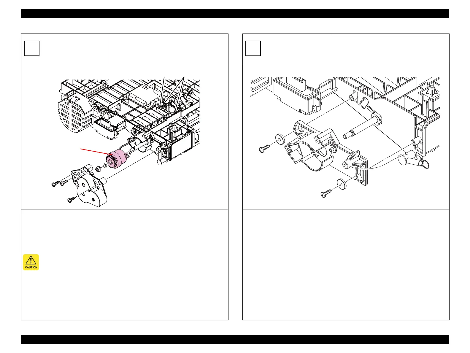 3. Remove the three screws (silver, self-tapping, 10 mm) that secure the GEAR ASSY to the
