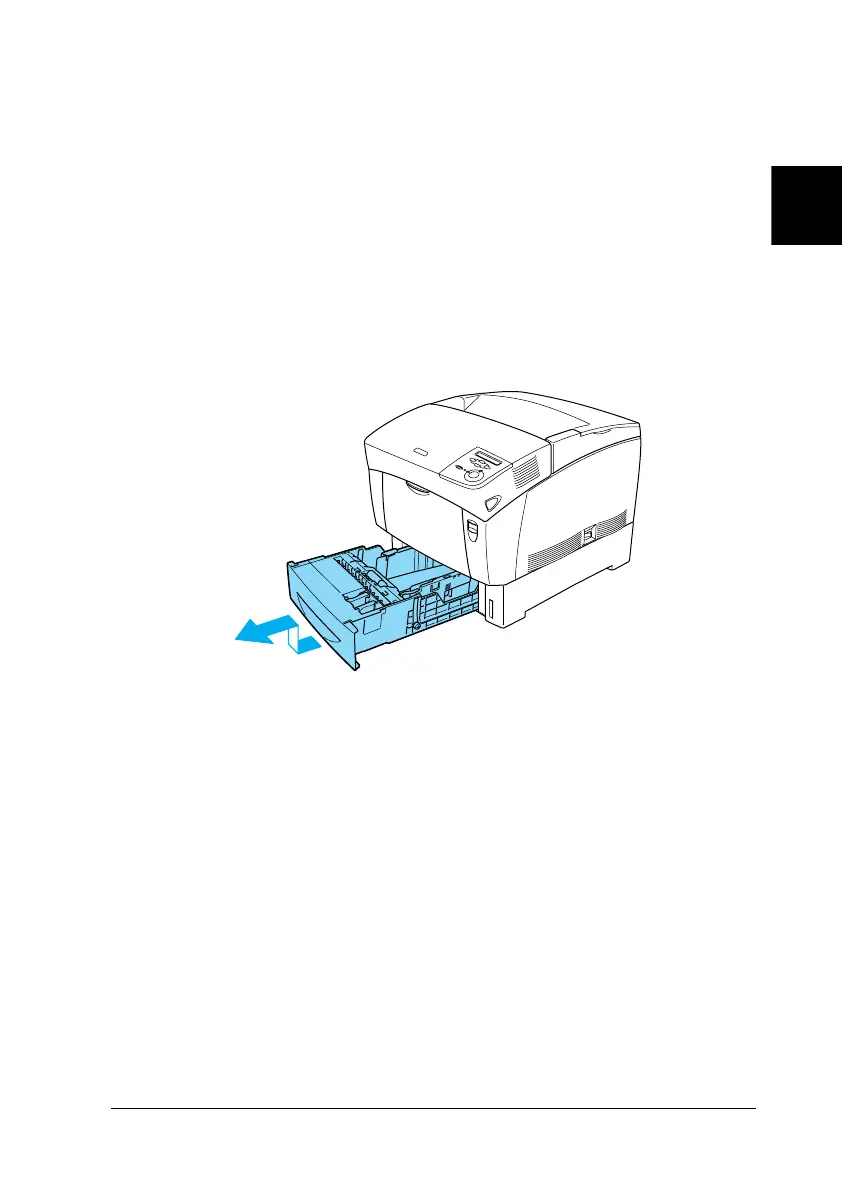 1. Pull the paper cassette out until it stops. Then lift up the front