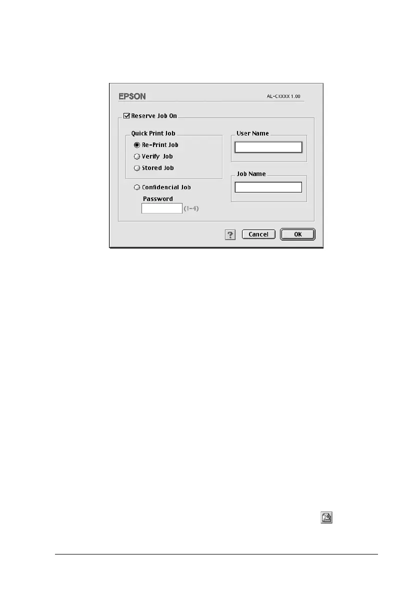 3. Enter a user name and job name in the corresponding text