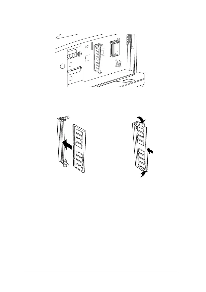 4. Insert the DIMM into either slot. The two clips lock onto the