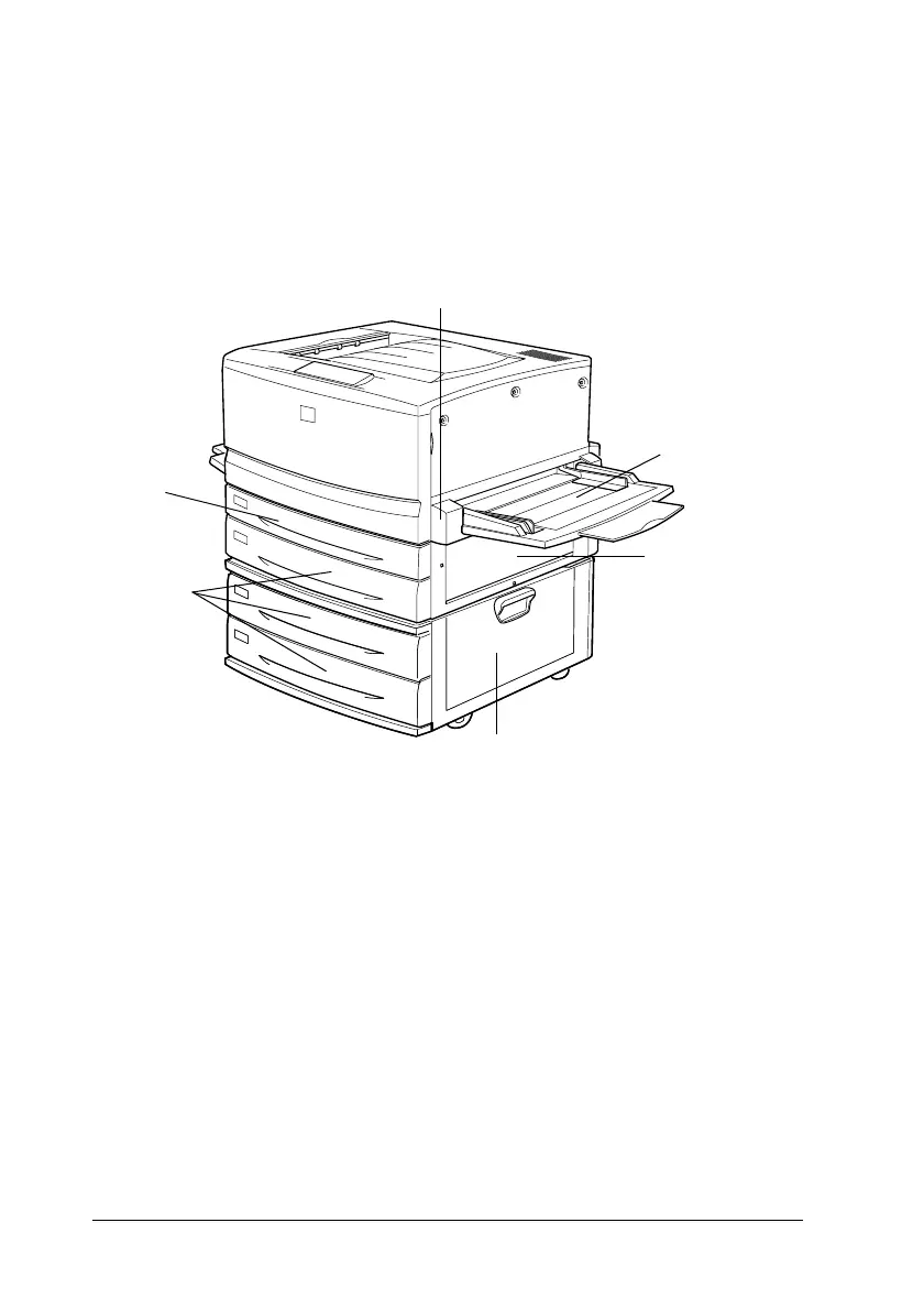 below as a guide for the printer parts indicated.