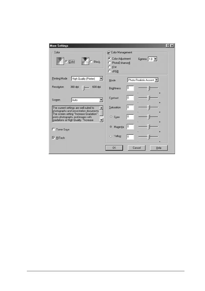 settings. For details on each setting, click the