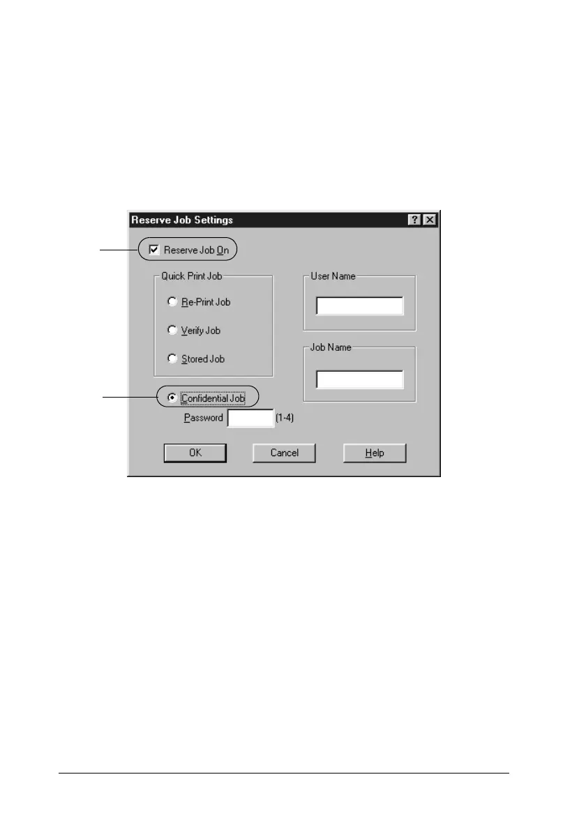 2. Select the Reserve Job Oncheck box and the Confidential Job