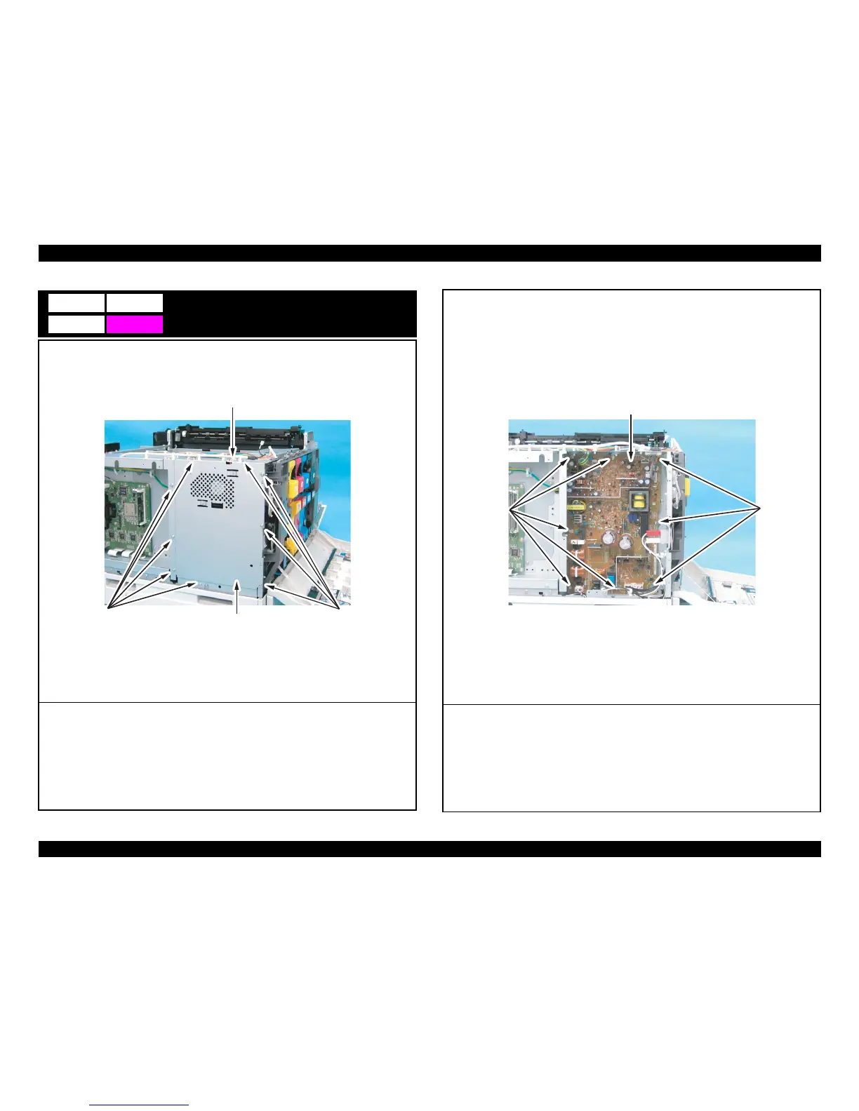 1. Remove nine Screws [1] and the Connector [2], then remove the protective sheet of the DC