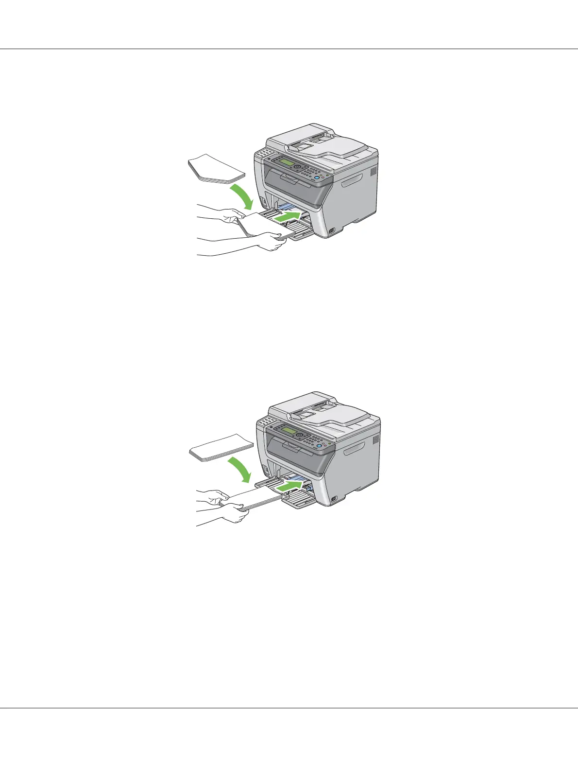 Load envelopes with the side to be printed on facing up, flap opened, and facing you.