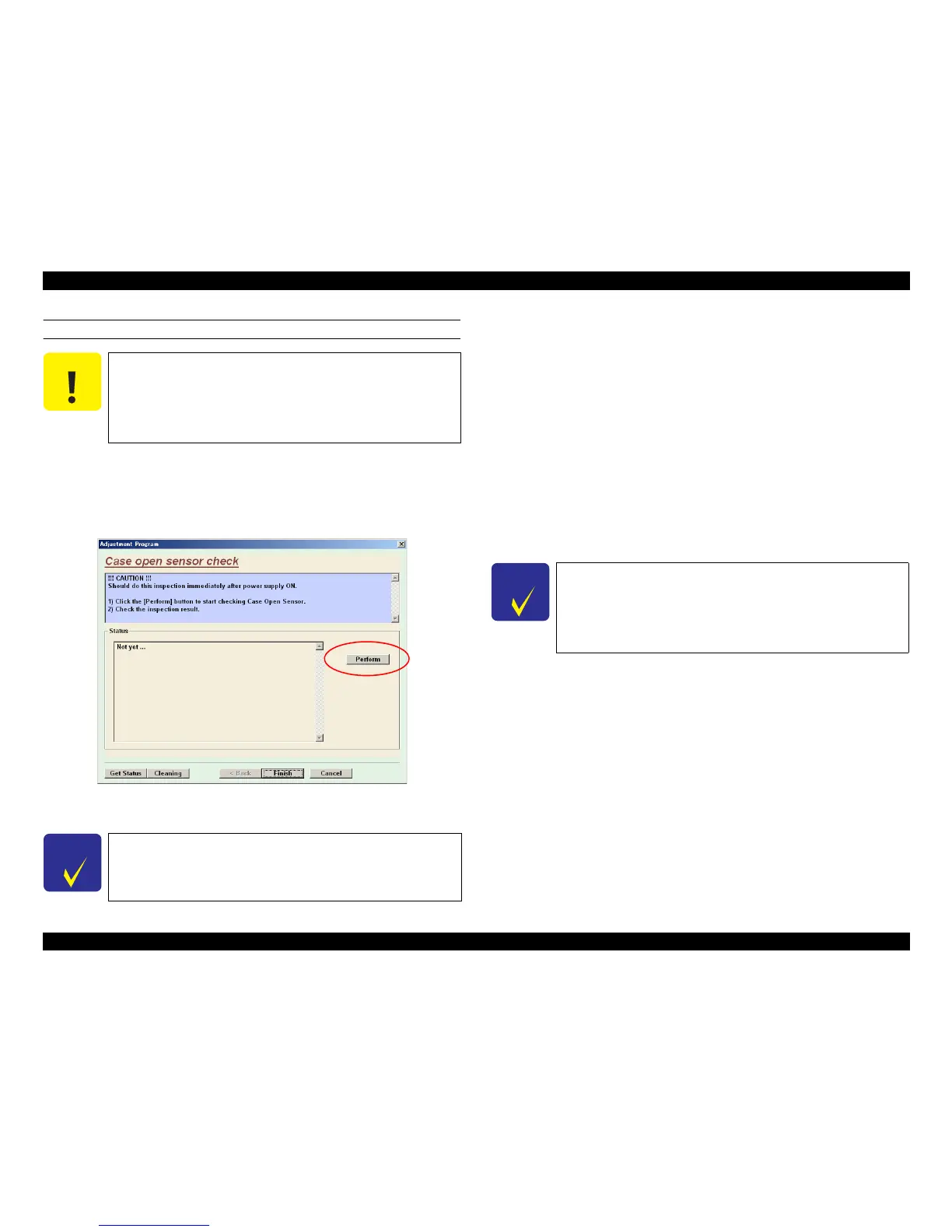 2. Select “Case open sensor check” from “Adjustment” of the adjustment program.