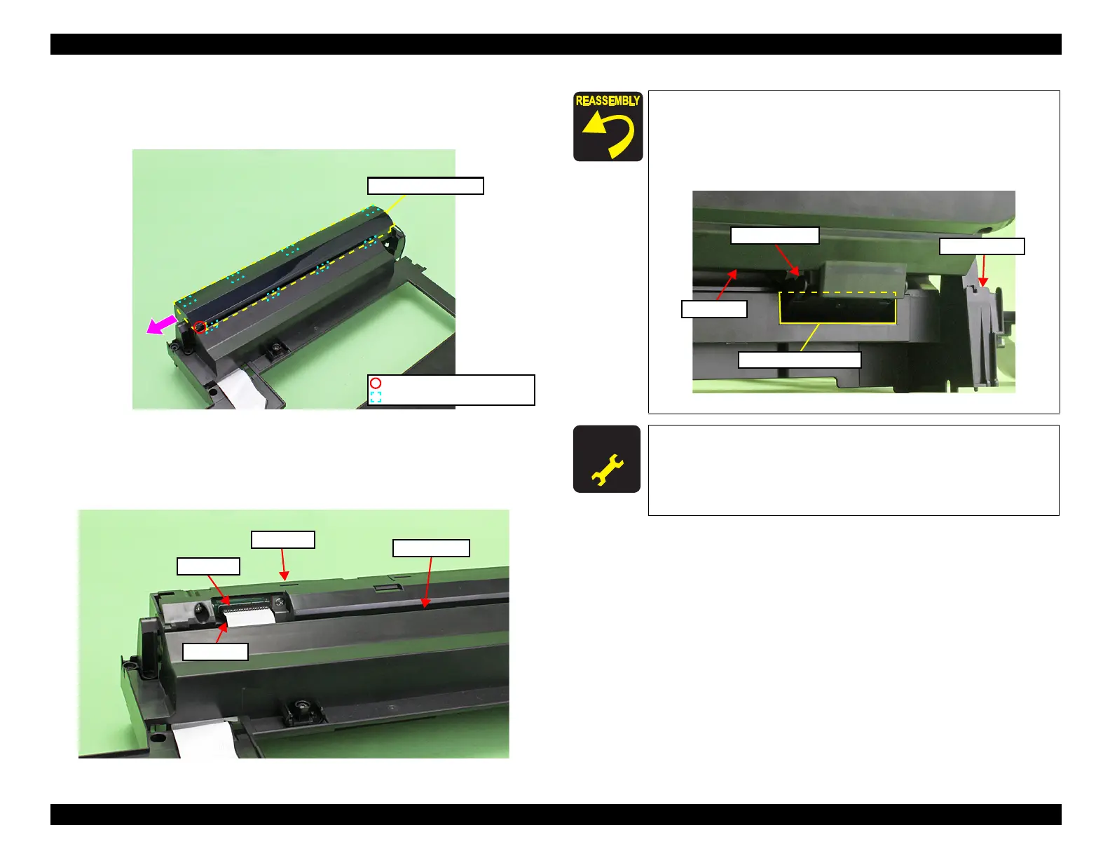 2. Lift the rib section of the Front Panel Unit Cover slightly and slide it in the