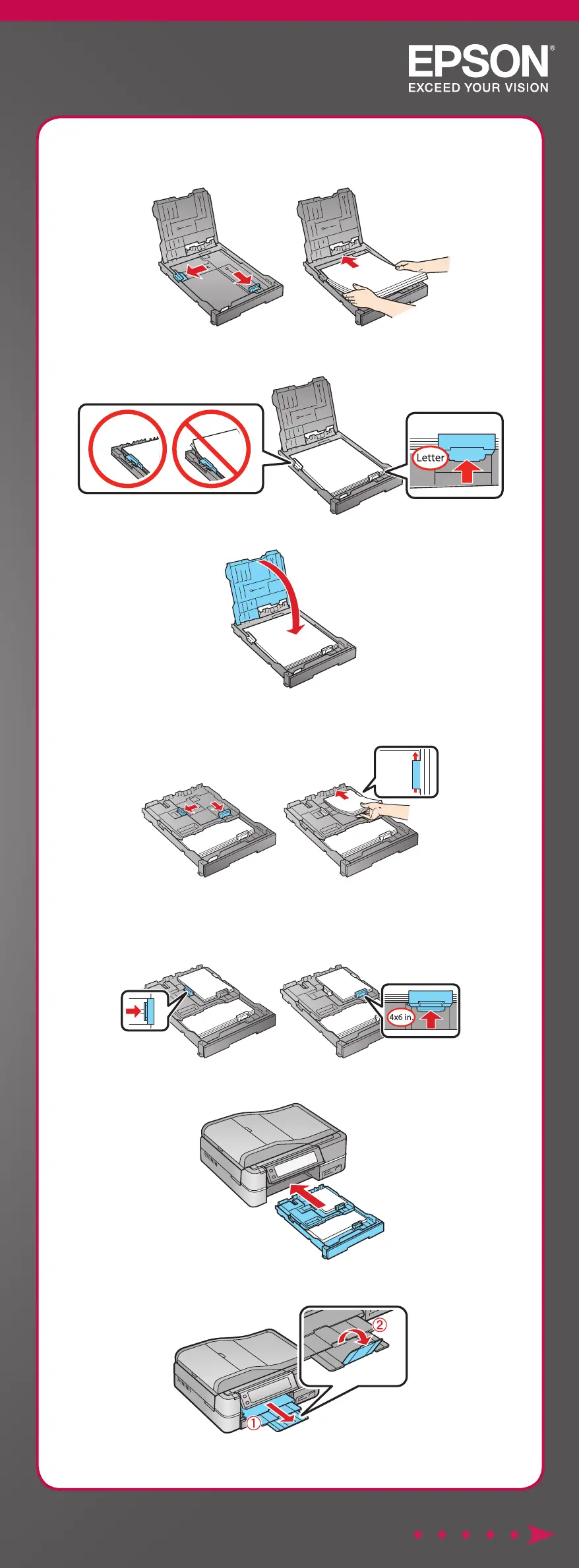2 Squeeze the edge guides and slide them out. Then insert paper with the