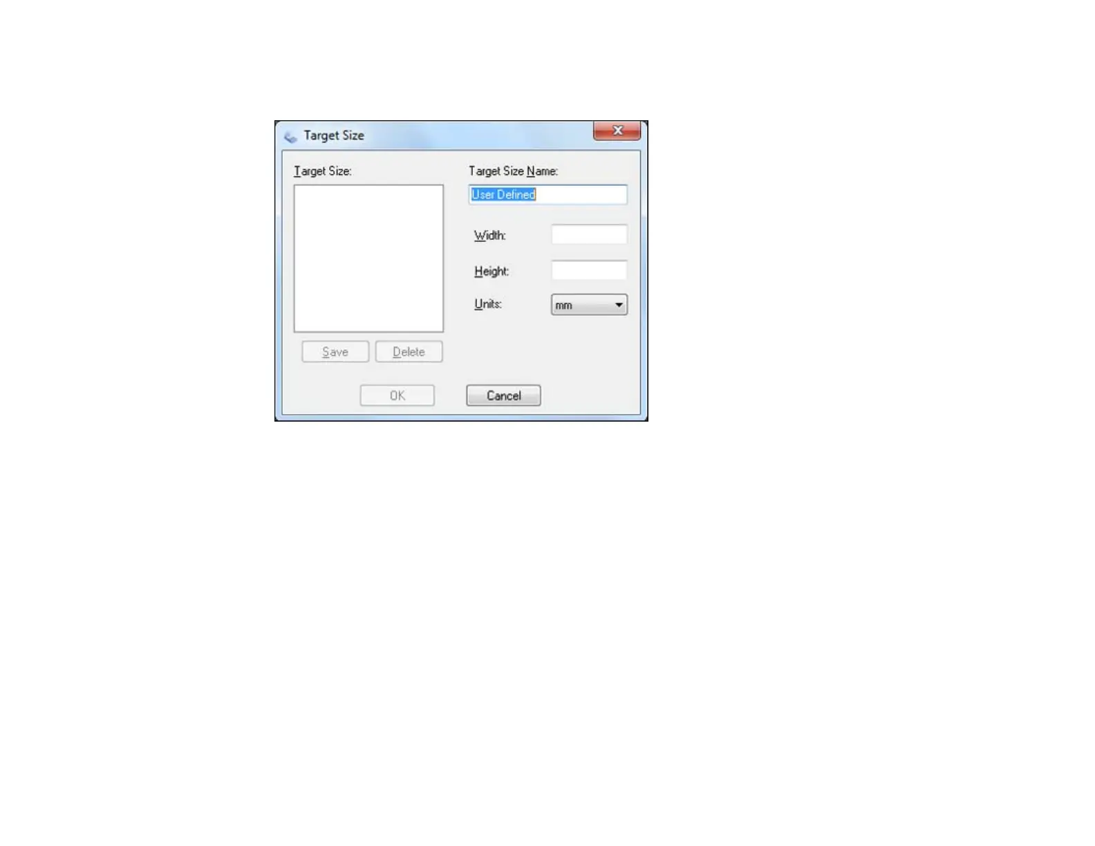 4. To create a scanned image size that is not available in the Target Size list, click the Customize