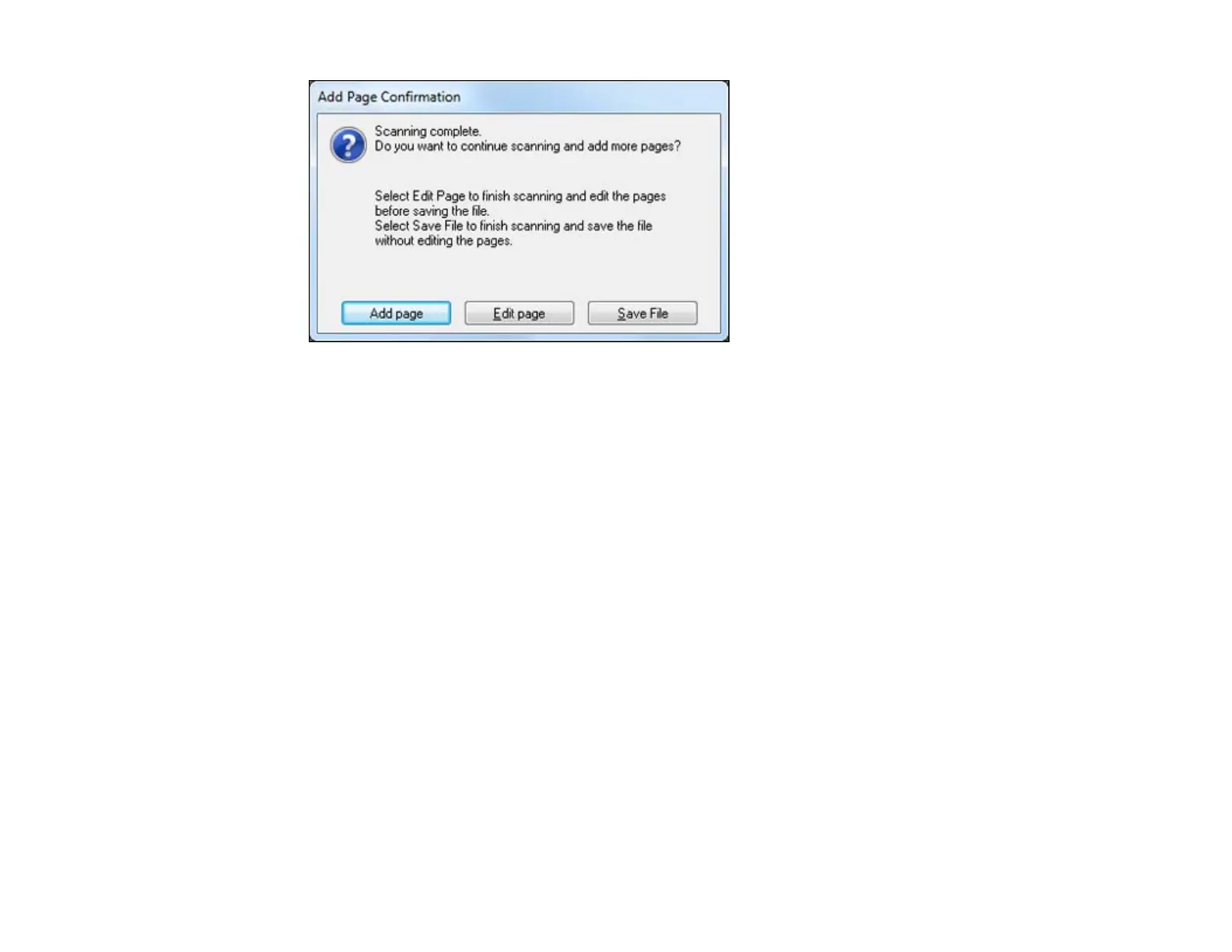 • If you need to scan additional pages in a document, click Add Page. Place additional pages on