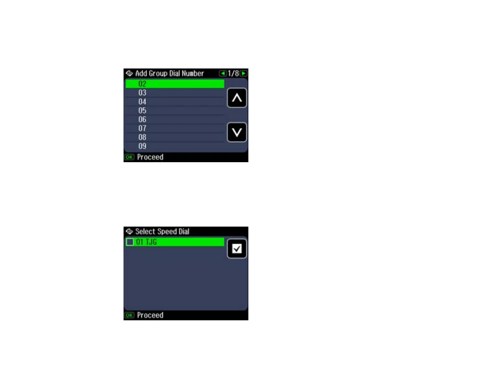 6. Select the number you want to use for the group dial entry you are adding and press OK.