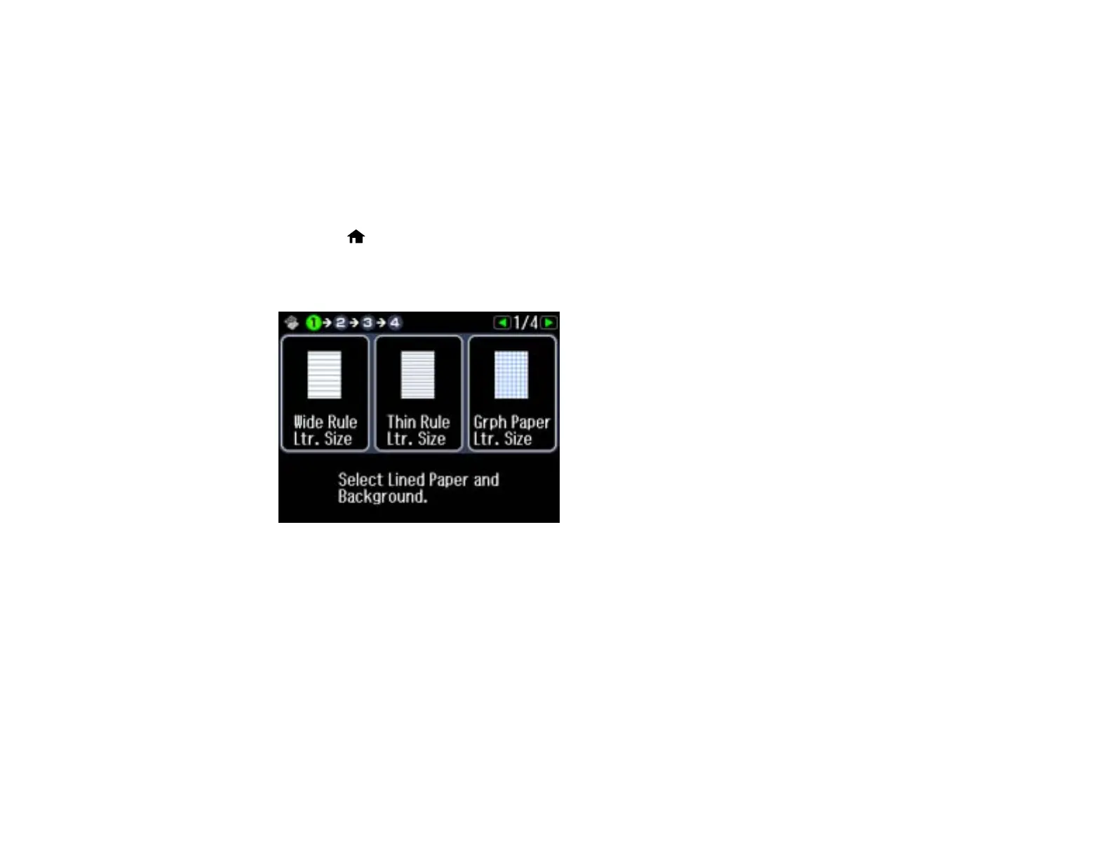 5. Press the arrow buttons and select one of the note paper settings (with or without lines) for the size
