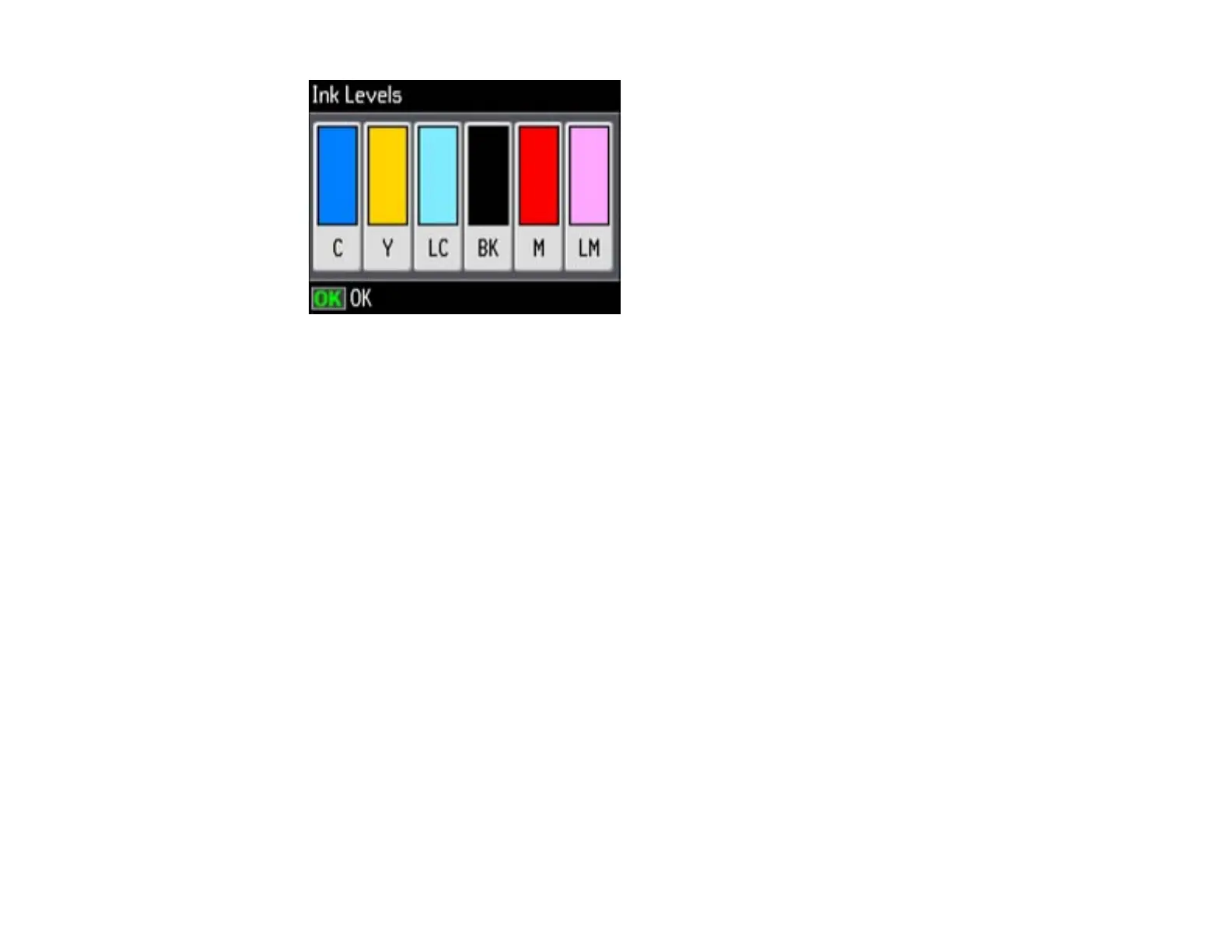 Note: The display is different depending on which ink cartridges are low or expended, if any.