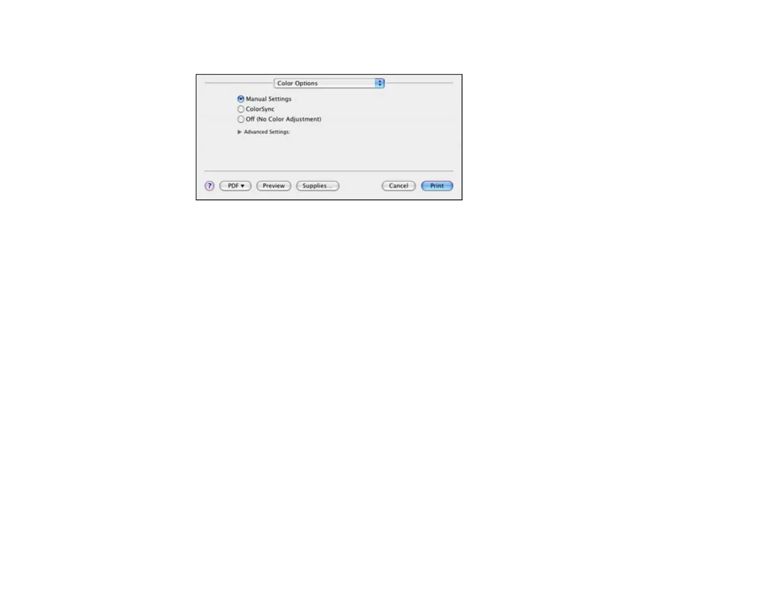 Lets you select manual color adjustments. Click the arrow next to Advanced Settings and select