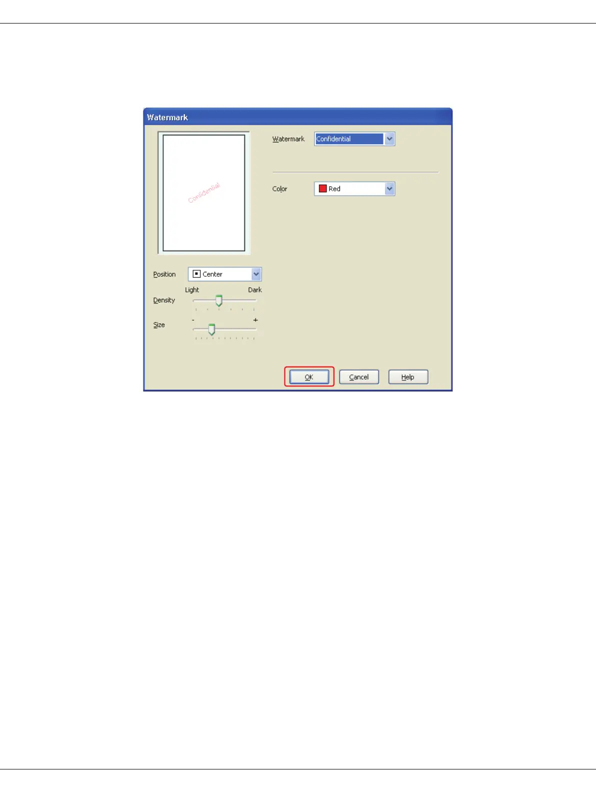 8. Specify the settings you want for the watermark. You can change the position and size