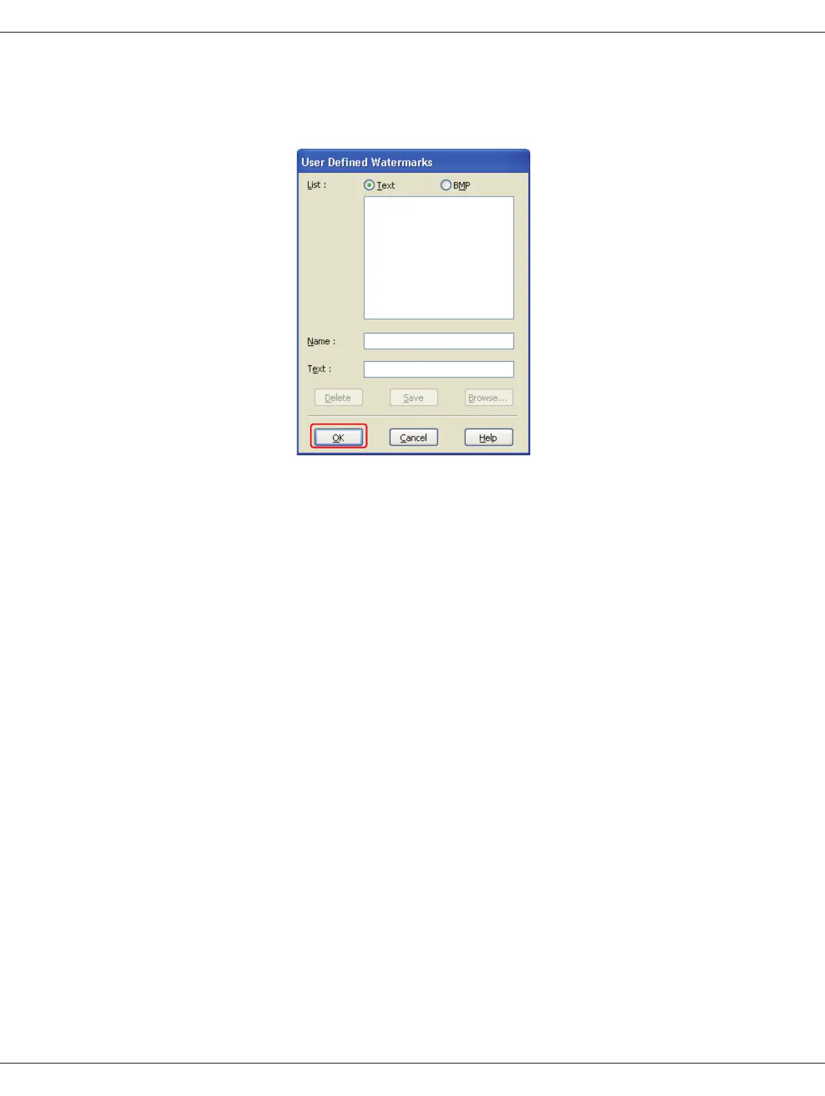 ❏ To use an image file as a watermark, select BMP. Click Browse to locate the bitmap