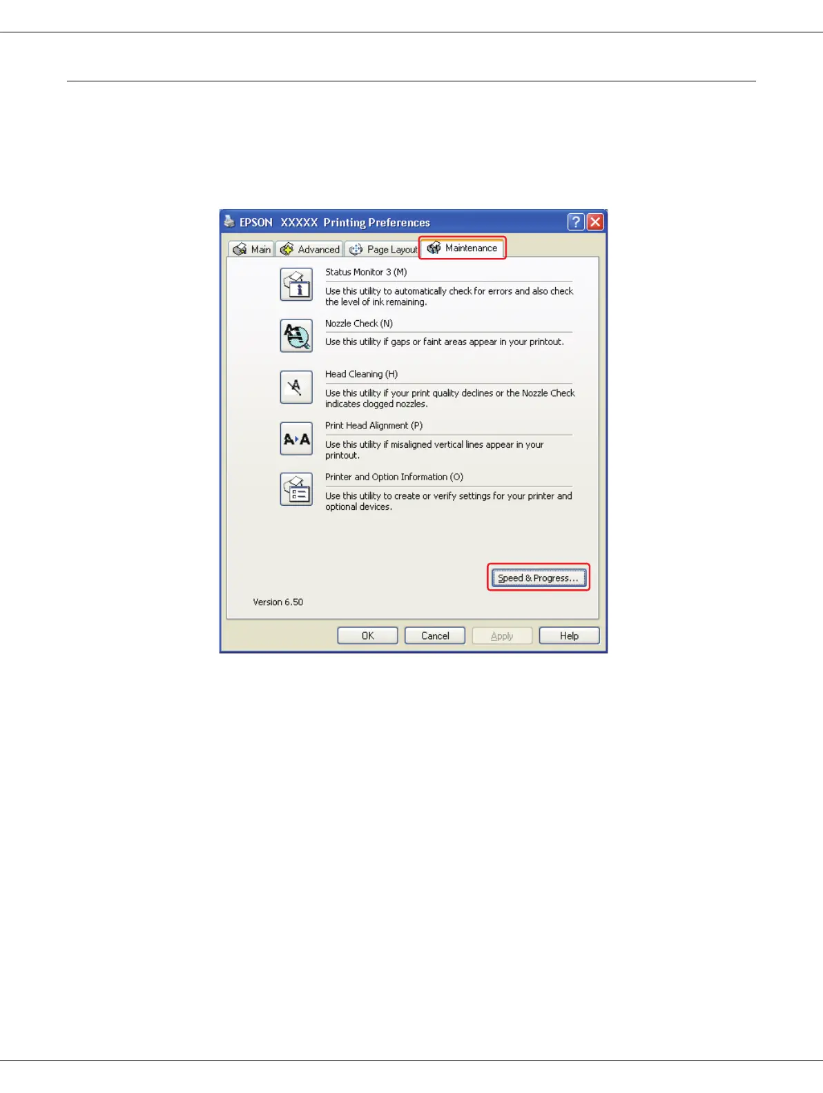 window. Click the Speed & Progress button on your printer driver’s Maintenance window.