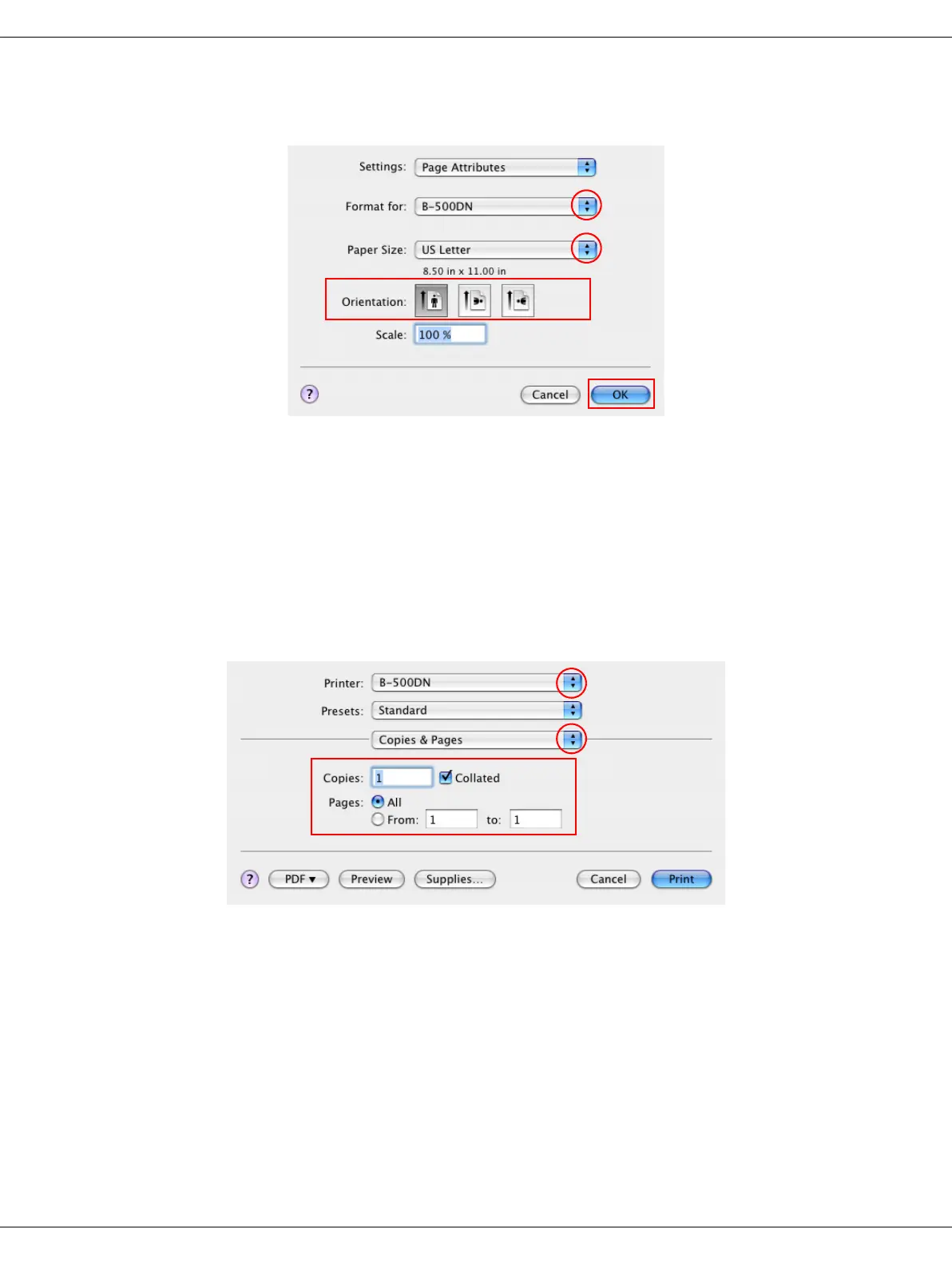 5. Select the printer you are using as the Printer setting. Then make the Copies & Pages