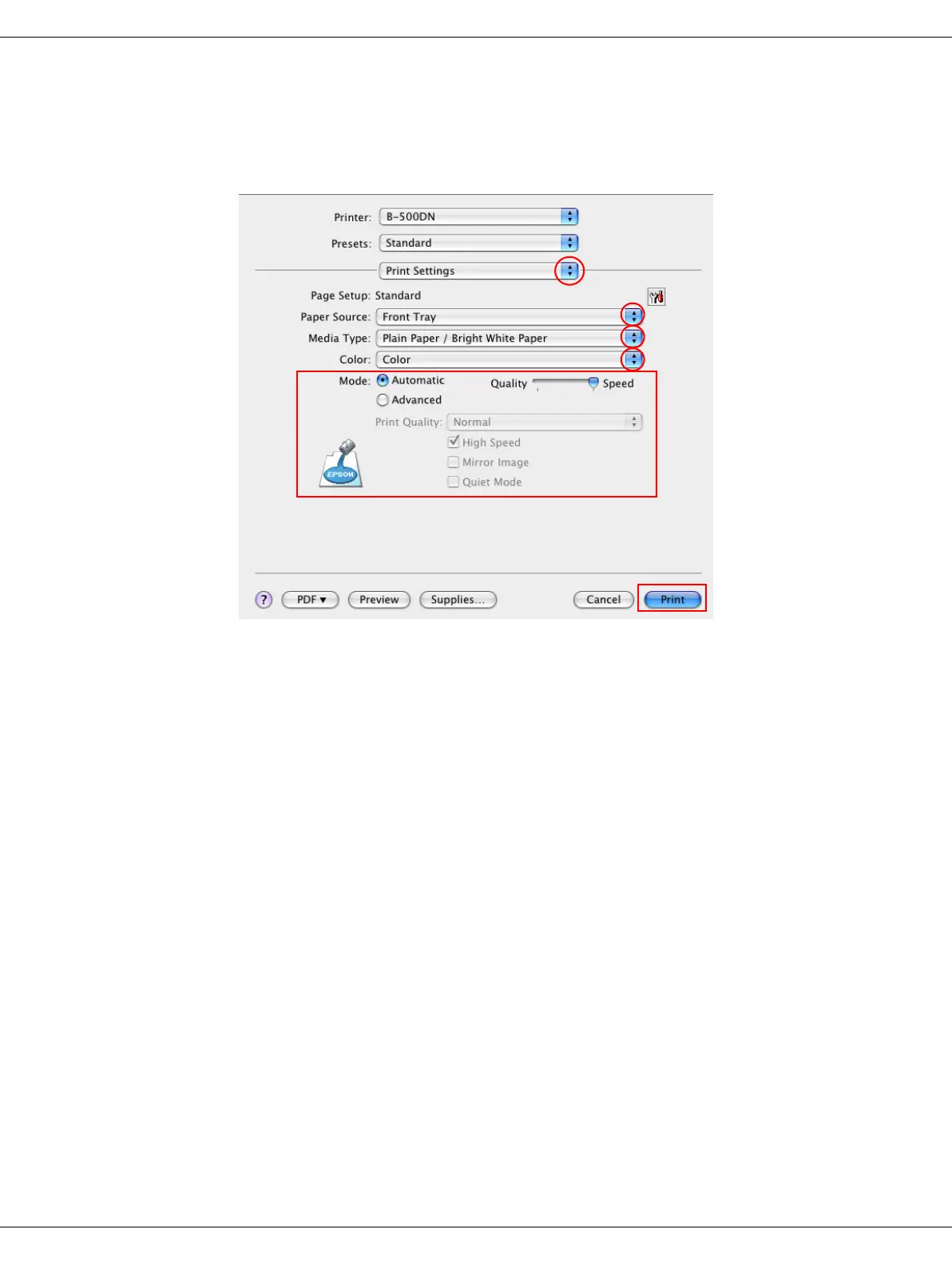 12.Make the settings that you want to use to print. See online help for details of Print