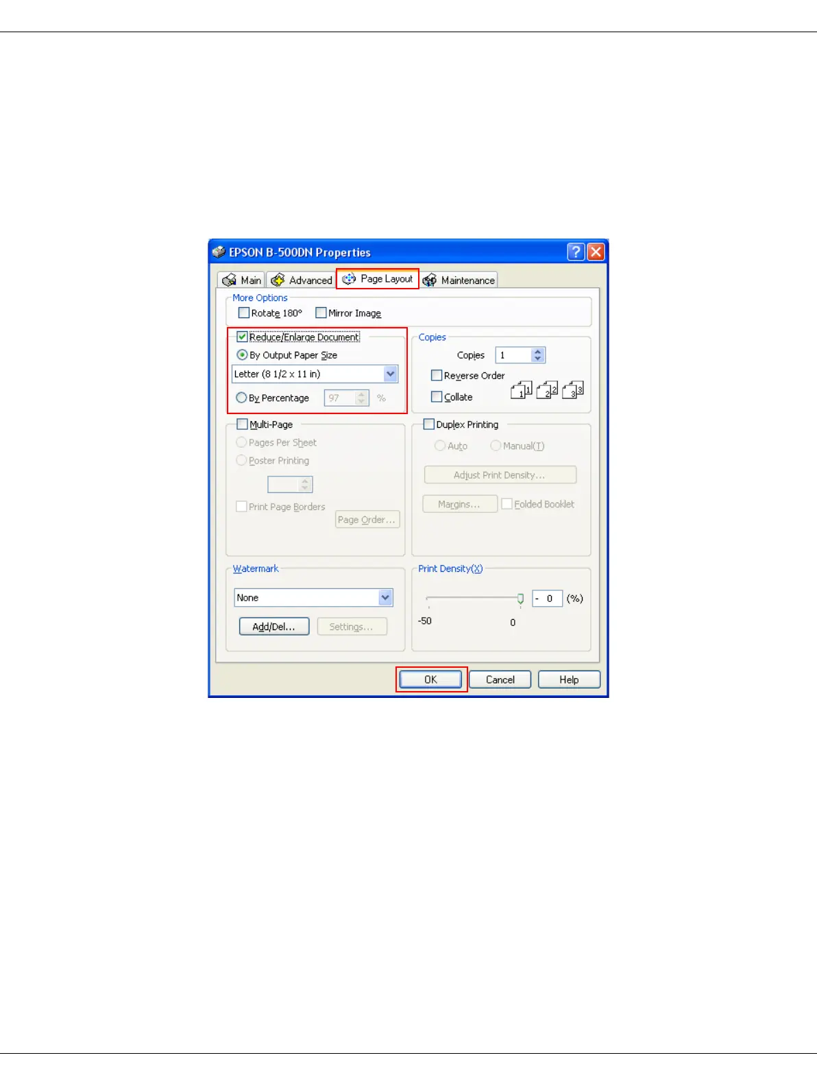 7. Click the Page Layout tab, then select the Reduce/Enlarge Document check box.