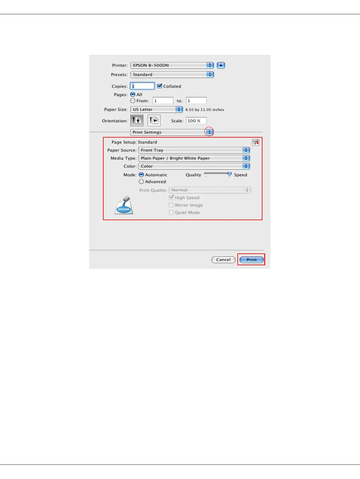 Printer Settings for Mac OS X 10.3 or 10.4