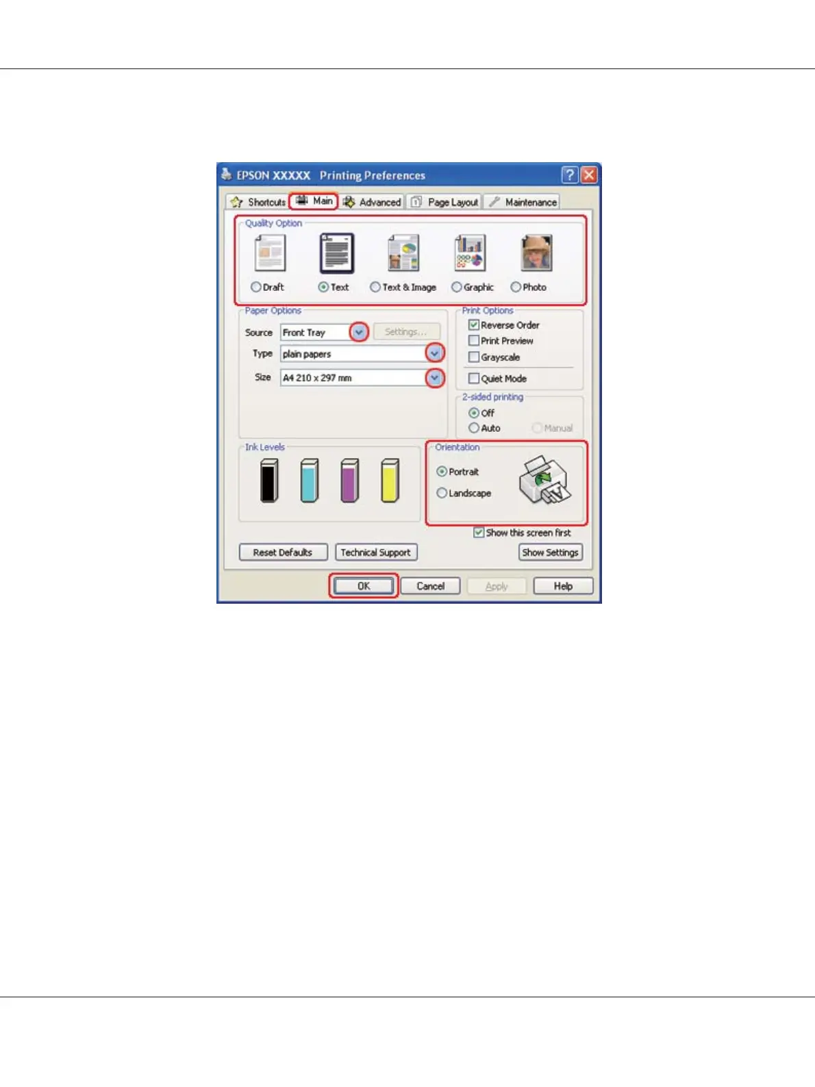 2. Click the Main tab, then select one of the following Quality Option settings: